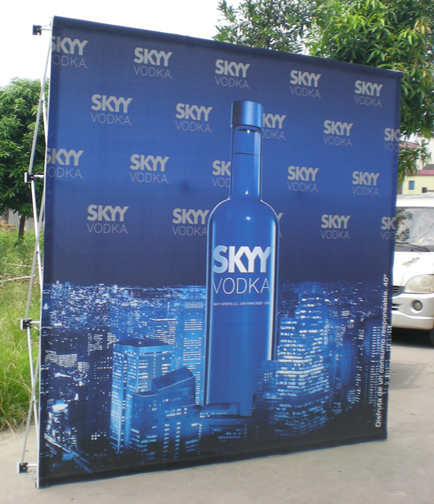 Our custom logo backdrops are lightweight, highly portable, and a breeze to put up. The durable fabric dye sublimation fabric graphic stretches over a popup aluminum frame and remains attached, allowing quick and easy set-up and tear down!